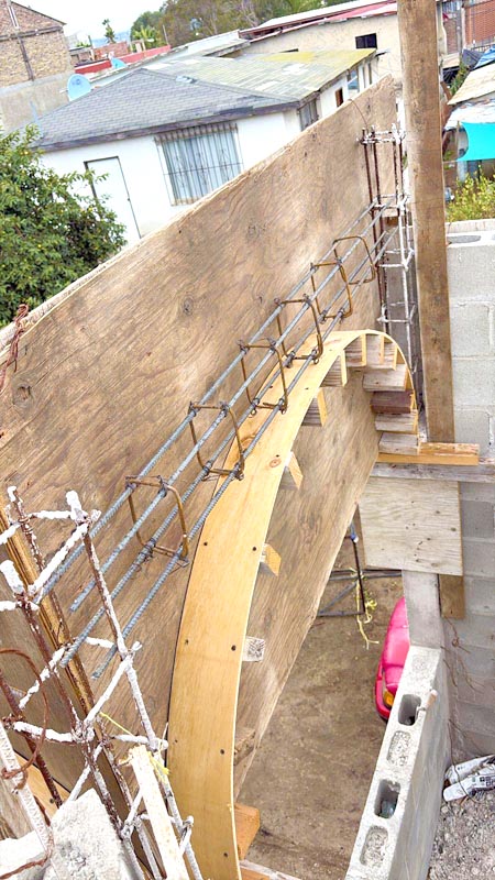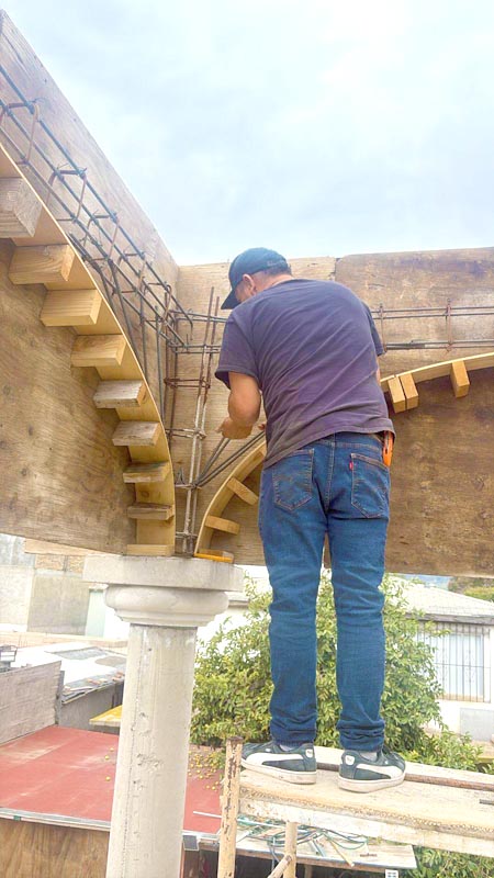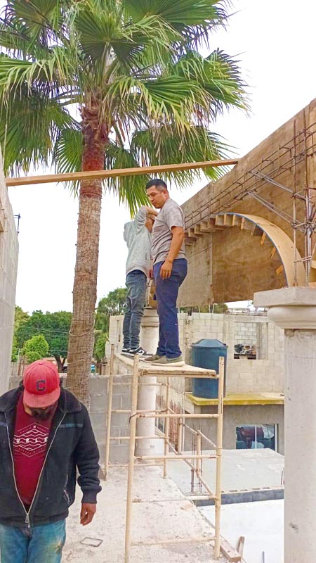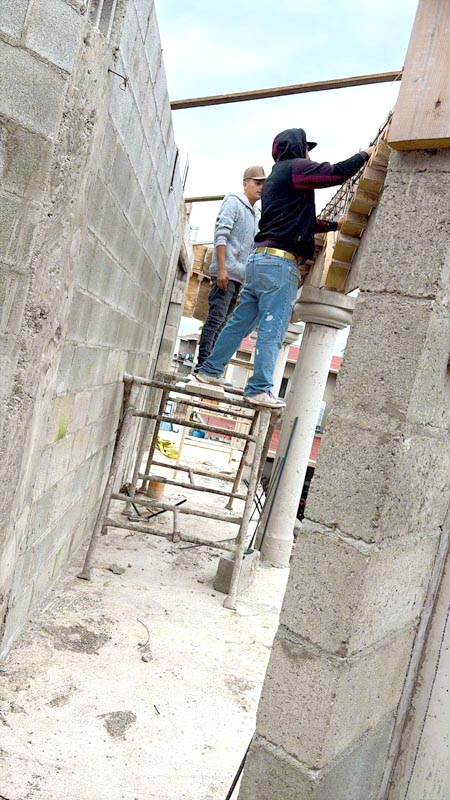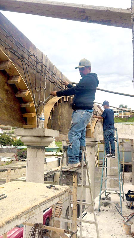 One of the fun things this last year we’ve had while helping different families finish their homes is seeing so many different building styles. Olga’s son makes concrete columns and has given them to several families. Our crew is then making the arched forms, and this is a beautiful, quick, and economical way of building walls to cover the stairway.