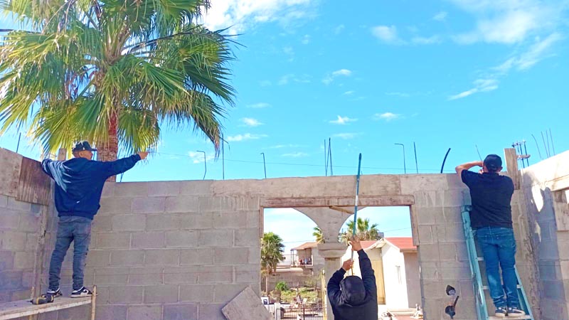The walls continue going up! When we work with wood framing and drywall, our crew is always amazed at how quickly we can raise the walls. Building with concrete block is laborious and heavy work, raising the walls. But it’s more durable, especially with the increased risk of wildfires. (You can see the beginning of this project – along with the wrap up to Israel’s, here )