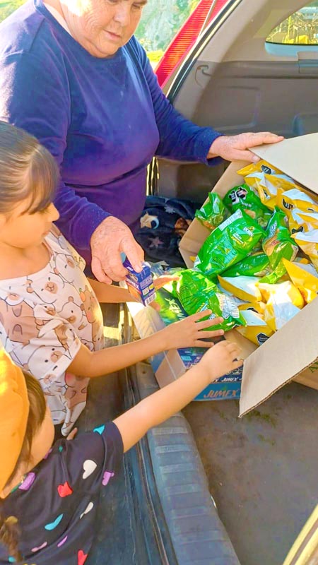 The woman helping us hand out groceries and snacks for the kids is the one we helped a couple of years ago after they lost their home and tamale business in a fire. She is always the first to offer to help. ♥