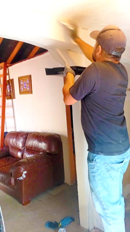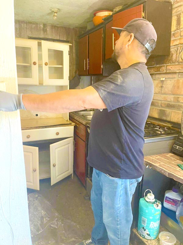 I’m so grateful we were able to help this widowed mom with a special needs son. (You can see the beginning of this project here!) After sealing the outside, we applied anti-mold paint throughout the inside.