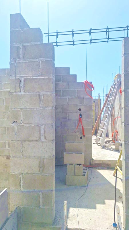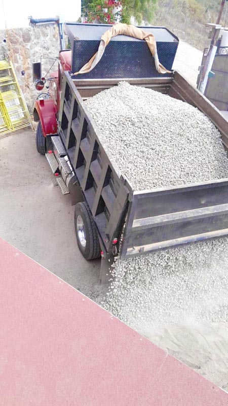 Onto the project pics! Our crew has been raising concrete block walls. And doing any concrete work means we will need a load of sand and gravel delivered (which always makes the dogs in the family happy. They love to lie on the sand mountains!).